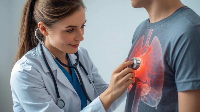 Stethoscope used to check heart, lungs, and organs for sound abnormalities, assessing overall health.