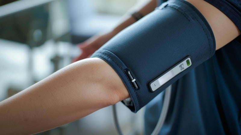 Checking blood pressure with an automated cuff. This simple test is a key indicator of cardiovascular health.